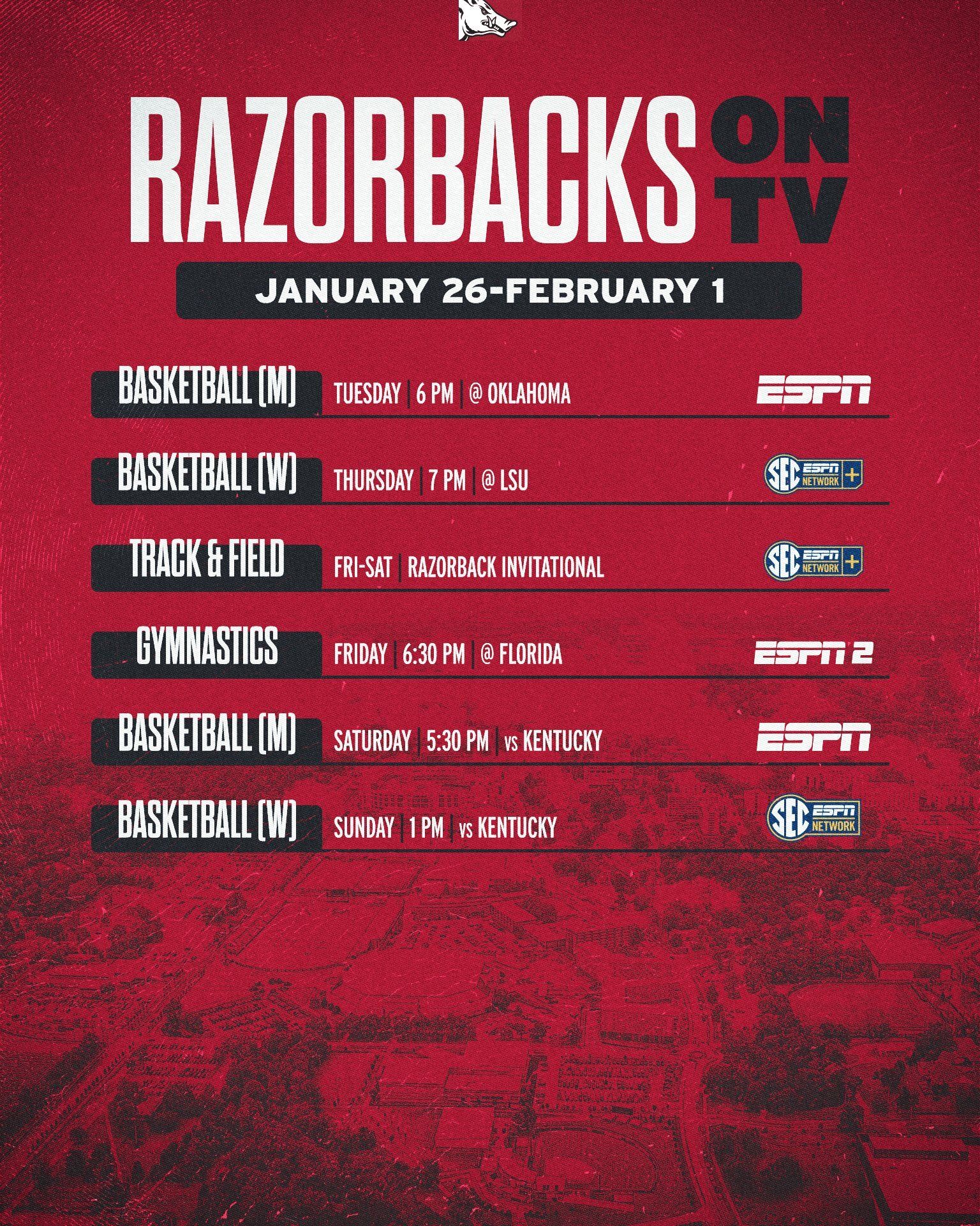 🔺 TV Time. Take a look at where you can find the Hogs on TV this week!