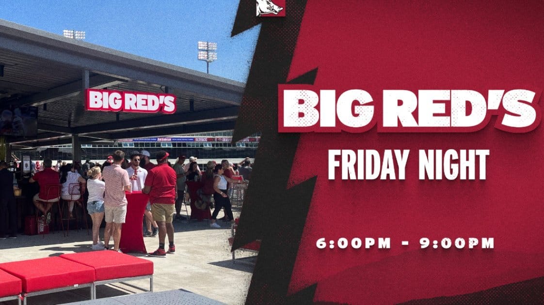 🔺 Friday Fun. Razorback fans are invited to kick off Family Weekend at Big Red’s Rooftop, the premier outdoor sports bar in college football, located on the North End Zone Deck of Razorback Stadium. The venue will be open Friday from 6-9 p.m., offering fans an unforgettable weekend atmosphere.