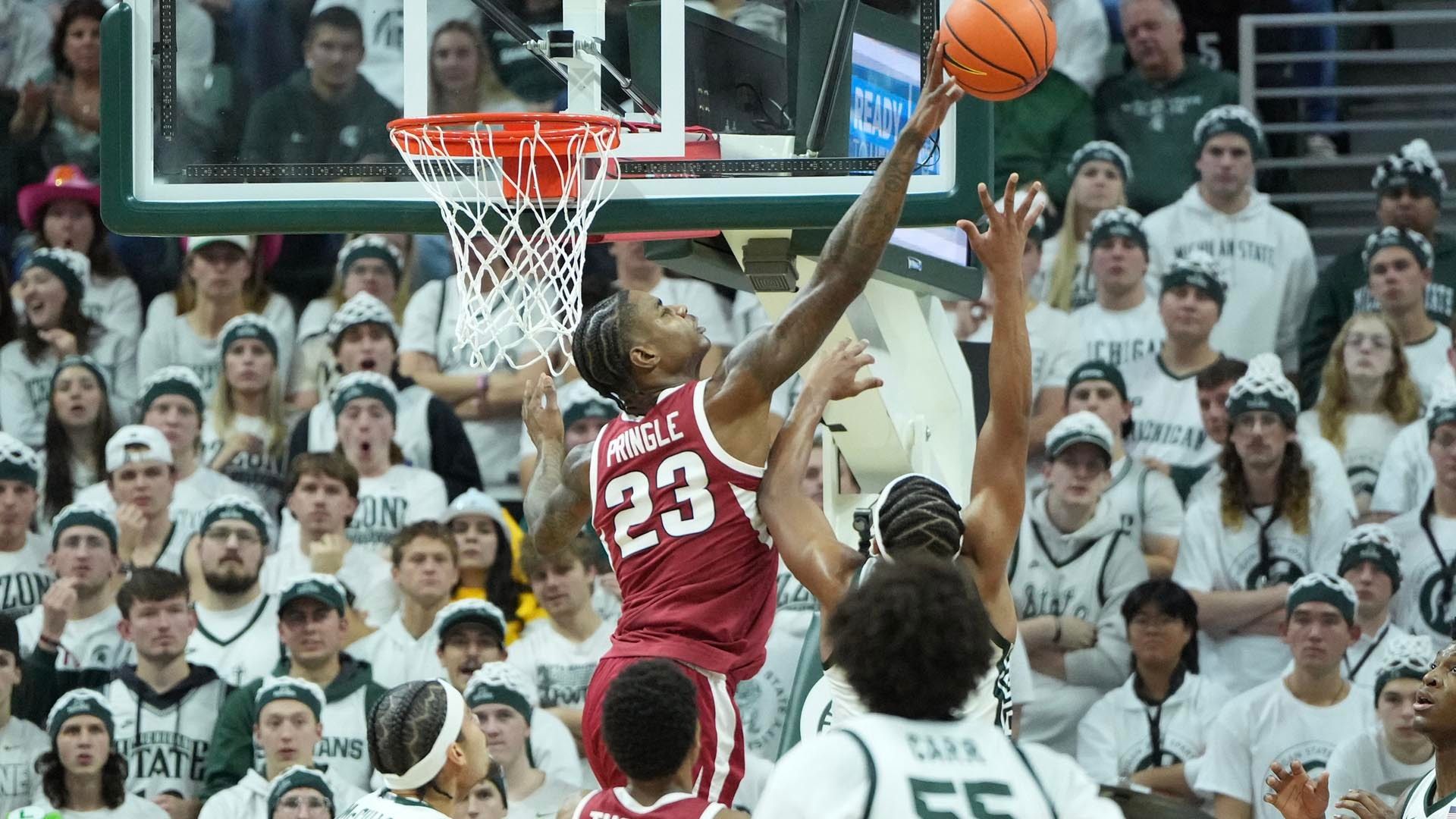 🔺 Down To The Wire. No. 14 Razorback men’s basketball fell at No. 22 Michigan State 69-66 on Saturday night. Freshmen Darius Acuff Jr. and Meleek Thomas led the Hogs with 16 points apiece. D.J. Wagner finished with 13 points. The Razorbacks will host UCA tomorrow at 7 p.m.