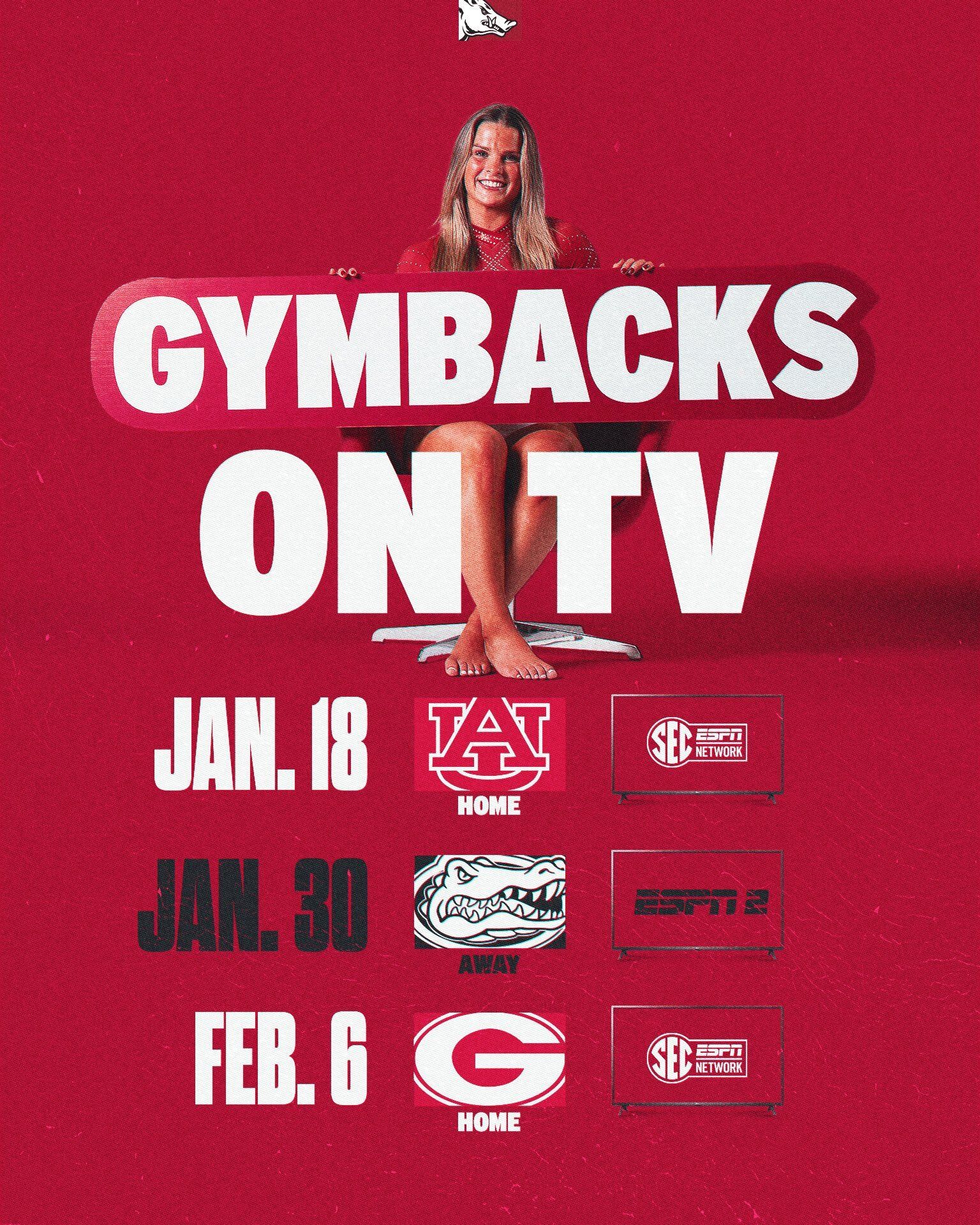 🔺 On Air. The Gymbacks will be featured on national television three times during the regular season this year! They’ll compete twice on the SEC Network and once on ESPN2. Additionally, the SEC Championships will air on the SEC Network. Season ticket renewals are open until Nov. 21st!