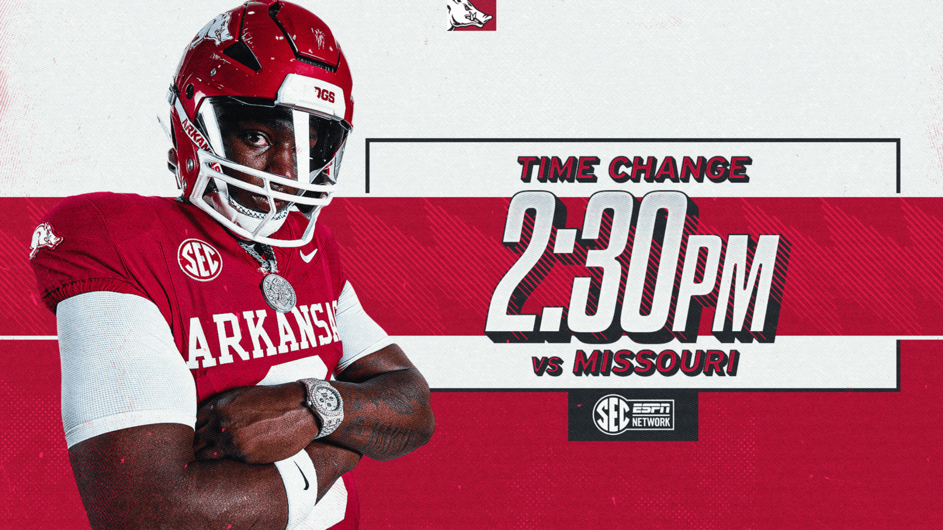 🔺 Change Of Plans. Razorback football will now play Missouri at 2:30 p.m. on the SEC Network on Nov. 29. The season finale will be the 17th meeting in the Battle Line Rivalry. First, the Razorbacks look at a road trip to Austin to take on Texas this weekend.