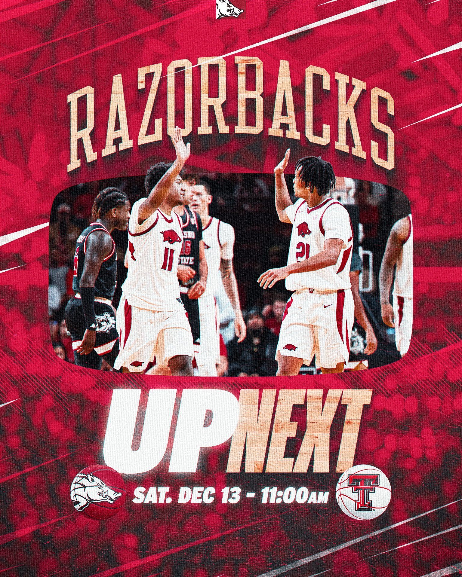 🔺 Razorback Rematch. No. 17 Razorback men’s basketball will play No. 16 Texas Tech in the Revocruit Rematch at Dallas’s American Airlines Center tomorrow. Tipoff is set for 11 a.m. on ESPN2. The two teams last met in last season’s Sweet 16, where Arkansas’s season came to an end.