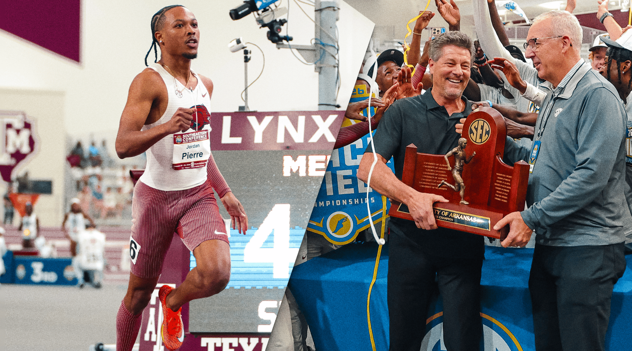 🔺 Best In Class. Razorback men’s track & field coach Doug Case won SEC Indoor Men’s Coach of the Year after leading the Razorbacks to their 28th SEC Indoor Championship. Jordan Pierre earned SEC Newcomer Runner of the Year after breaking the UA record in the 400m and contributing to the Razorbacks’ success in the 4 x 400m relay.