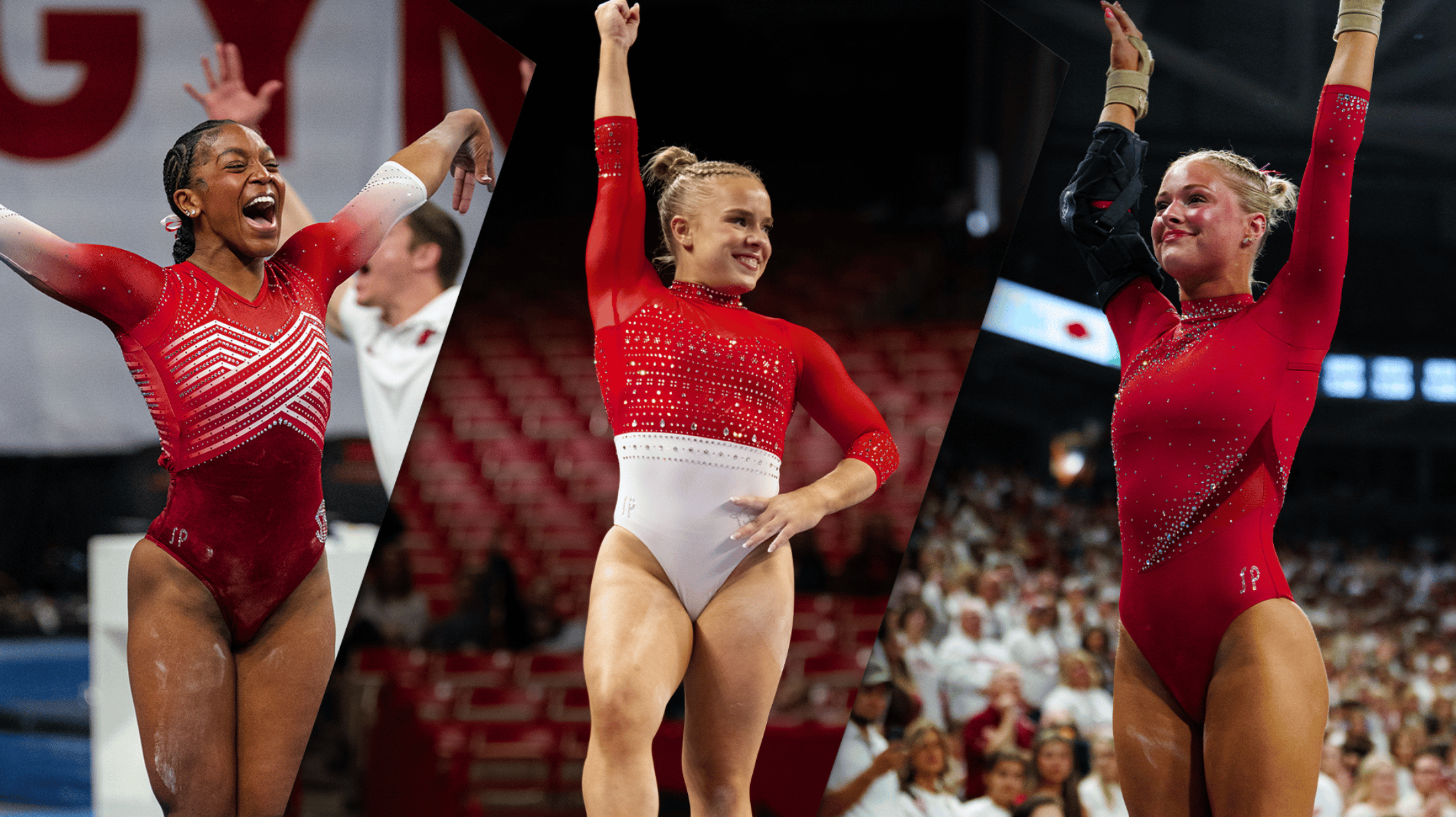 🔺 All-American Girls. Three Arkansas gymnasts — Morgan Price, Joscelyn Roberson, and Lauren Williams — were named WCGA Regular Season All-Americans. Price earned All-America honors in vault and bars. This is the first time three Gymbacks have earned this honor in a single season, and their four honors match the program record for All-American selections.