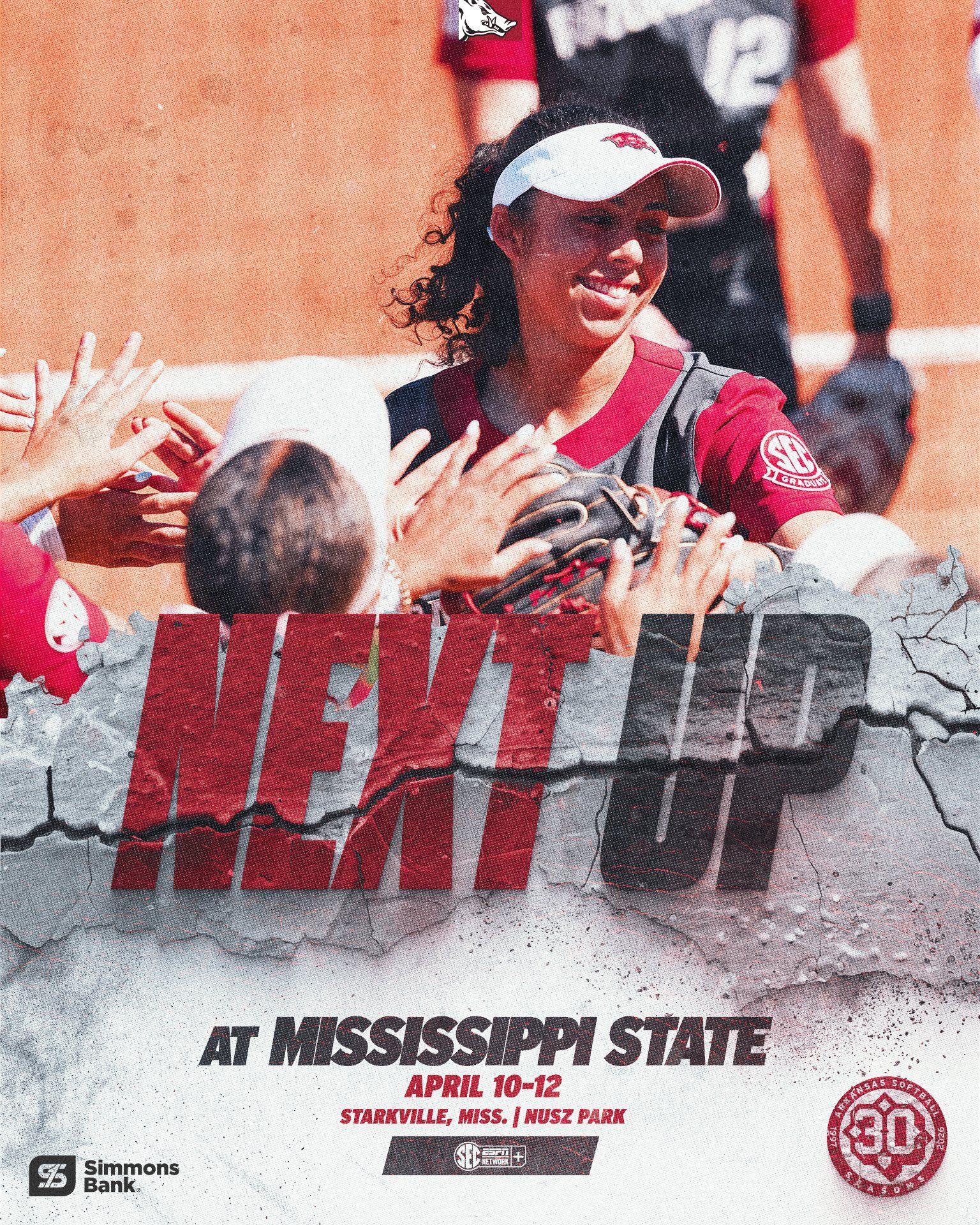 🔺 Top-15 Trip. No. 6 Razorback softball starts a six-game road trip this weekend! They’ll play three at No. 15 Mississippi State, starting today at 5 p.m. All three games will stream on SEC Network+.