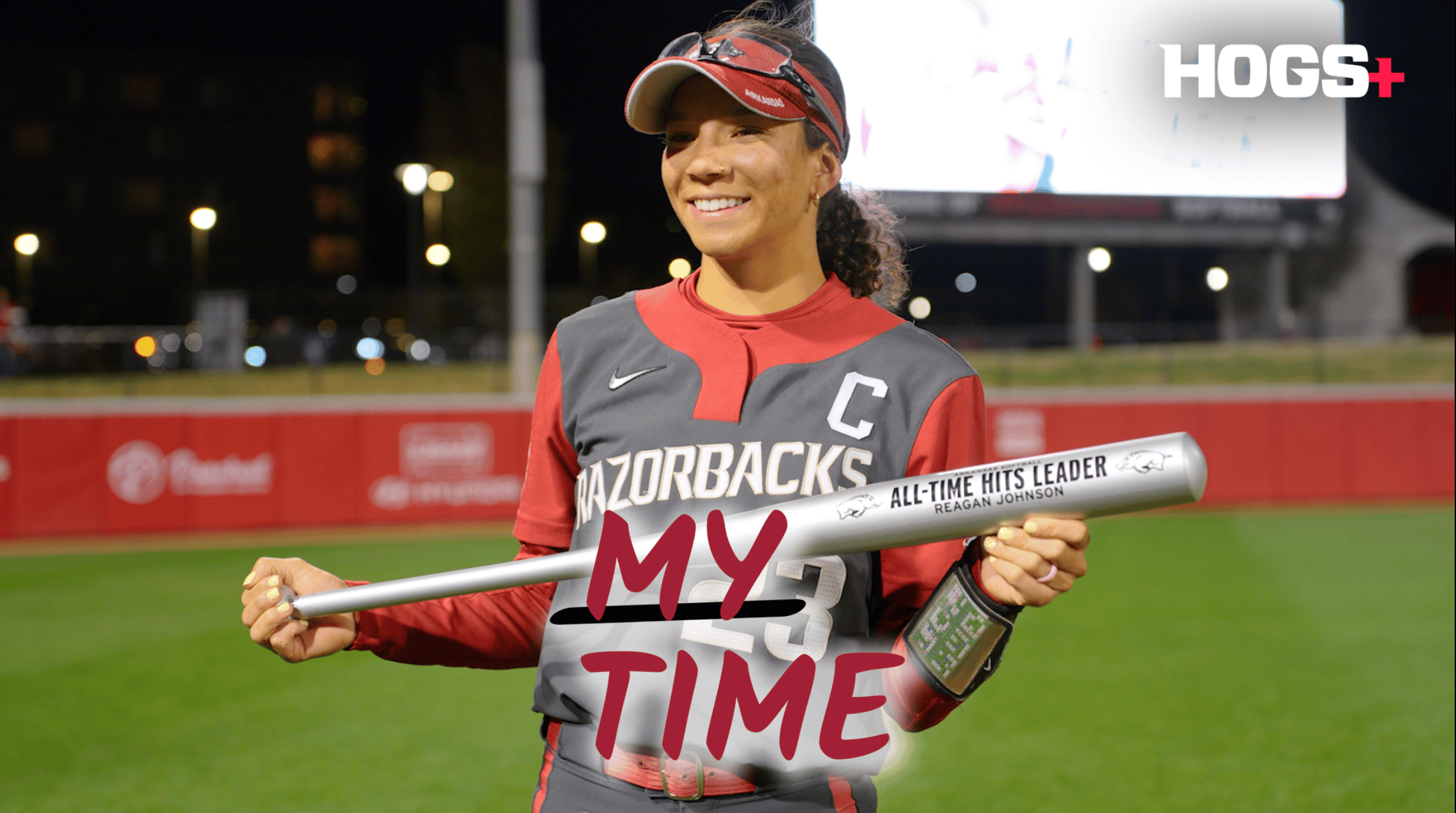 Senior Reagan Johnson makes her 262nd hit to become Arkansas softball's newest All-Time Hits leader during their series against Florida.