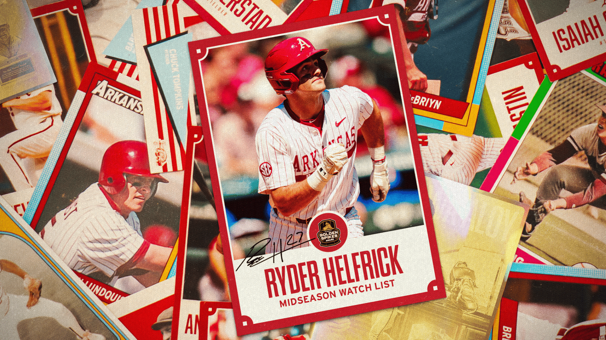 🔺 Golden Boy. Arkansas catcher Ryder Helfrick is named to the midseason watch list for the Golden Spikes Award, presented to the best amateur baseball player. Helfrick leads the Razorbacks with 12 home runs and 30 RBIs, and is a strong contender for the award.