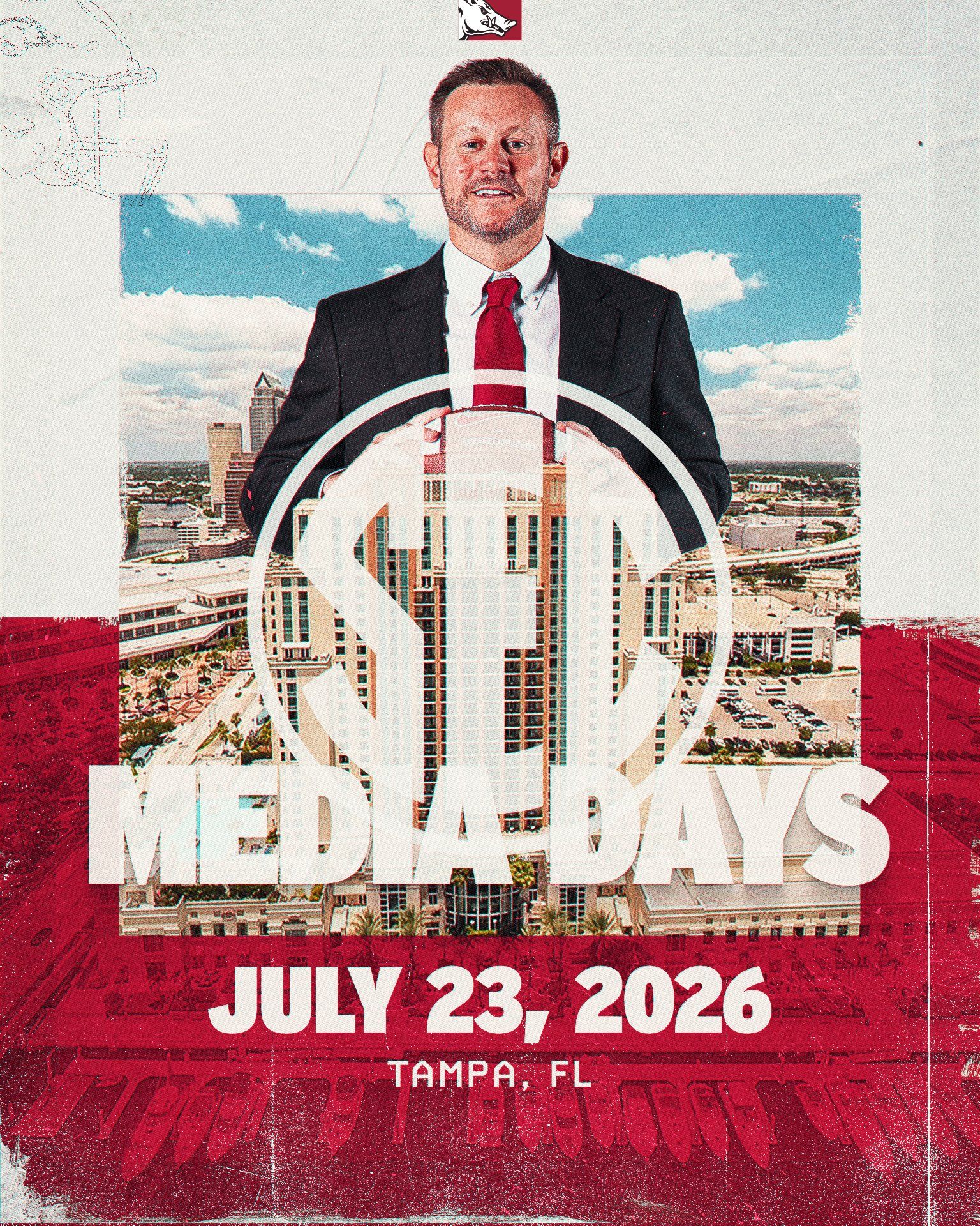 🔺 Talk Soon. The SEC Football Kickoff Media Days will be held in Tampa, Florida from July 20-23. This will be the first time Tampa hosts the event, which will be broadcast on the SEC Network. Coach Ryan Silverfield will take the stage on Thursday, July 23.